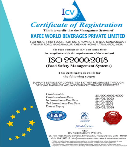ISO 9001:2015 for Quality Management System(QMS) and ISO 22000:2018 for Food Safety Management System (FSMS) certifications validate our focus on quality, efficiency, and continuous improvement.